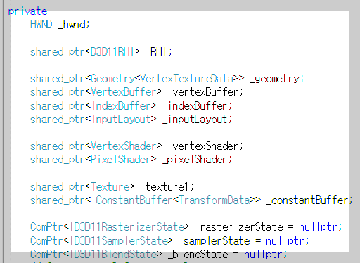 위 객체들 초기화 코드 참고. D3D 객체들을 모두 은닉화.