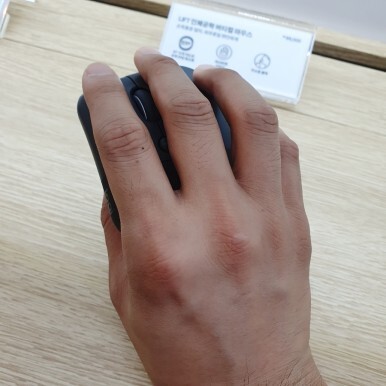 저는 아시안이지만(...) 손이 작은 편은 아닙니다. 카드 가로로 3개 반을 조금 넘어가는 손 크기인데, LIFT 를 잡았을 때 엄지와 검지 사이에 공간이 조금 뜨는 것 처럼 느껴지는 정도. 가볍고 앙증맞아서 손이 쉽게 피로해질 것 같지는 않은 그립감이었습니다. 대신, 손이 좀 뜨는 느낌이 들어서 정교한 클릭에서 조금 미스가 날 것 같은 느낌은 들었어요.
