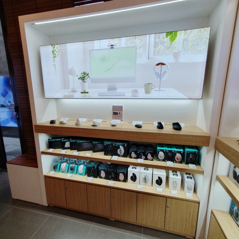 식당들이 위치한 층에 로지텍 매장이 같이 위치해 있었습니다. 삼성 부스 옆에 나란히 있어서 이것저것 구경하기 좋은 구성이었어요. 지나가다가 구경삼아 들르는 사람들도 많이 보였고요.