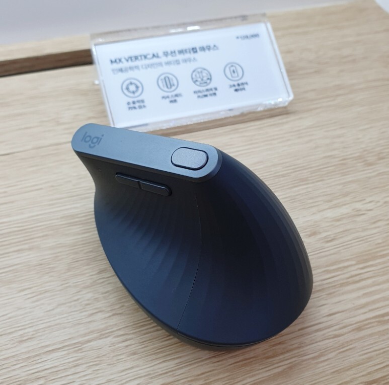 이번엔 MX VERTICAL 입니다. 좀 더 묵직하고, 손이 닿는 부분이 전체적으로 실리콘 제질? 비슷한 것으로 둘러져있고 세로로 줄무늬가 있어서 손이 미끄러지는 것을 방지해주는 느낌입니다.