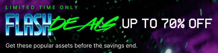 블랙 프라이데이 기간 중 50% 할인보다 더 큰 할인 혜택을 누리기 위해서는 반짝 세일인 Flash Deals를 놓치면 안 됩니다. 매 12시간마다 최대 70%까지 할인되는 새로운 신규 에셋이 제공됩니다. 매일 최소 2번씩 플래시 딜 페이지를 확인하여 새로운 할인 에셋을 확인하는 것이 좋습니다. 미리 다가올 할인 일정을 확인하여 준비하는 것도 추천됩니다.
