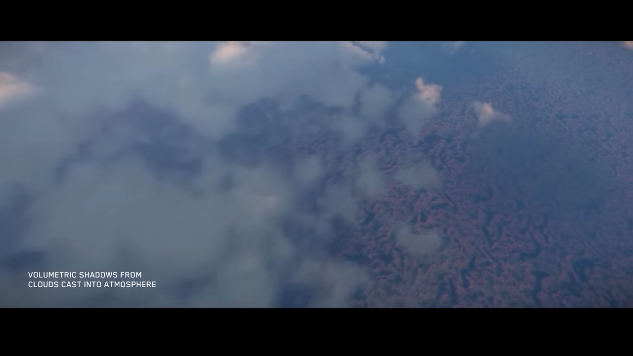 Volumetric shadows from clouds cast into atmosphere