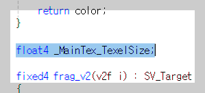 주의해야 할 부분은, _MainTex_TexelSize 라는 이름의 변수명을 생성해주는 것이 아니고, {TextrueName}_TexelSize 라는 이름으로 생성해준다는 것. 셰이더를 작성할 때 보통 _MainTex 프로퍼티를 생성하기 때문에 결론적으로 _MainTex_TexelSize 라는 변수가 만들어졌던 것.