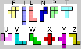 5개의 단위 정사각형이 변끼리 붙어 이루어진 도형으로 모양을 만드는 놀이.