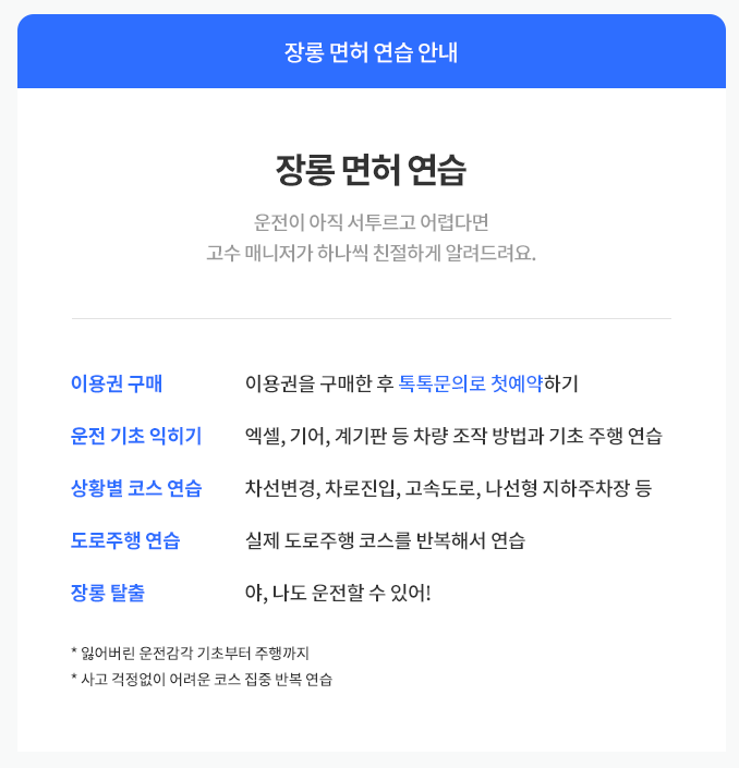<고수의 운전면허>와 <뛰뛰빵빵> 두 곳 모두 체인점이 좀 있던데 매장 수는 <고수의 운전면허>가 좀 더 많더라. 가격은 조금 차이가 있었는데,