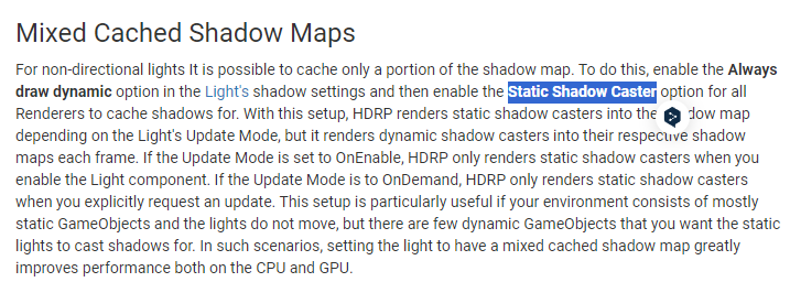 요약하면, "SRP 에서 Cached shadow maps처리할 때 shadow caster가 static/dynamic 인지 체크하기 위한 플래그" 라는 뜻.