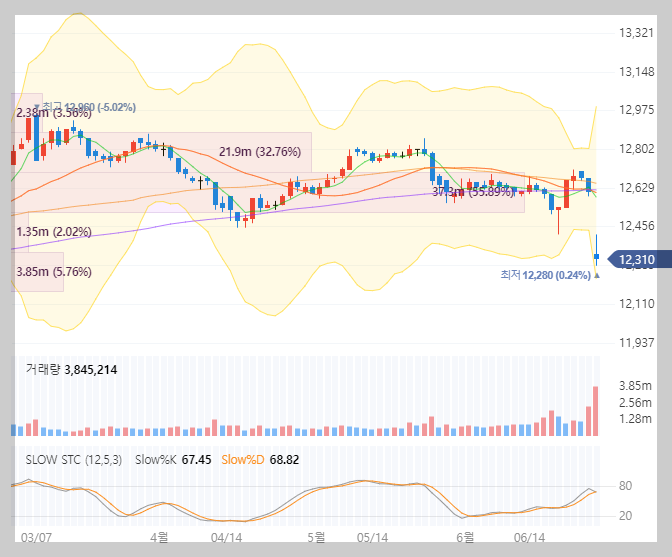배당락은 배당 분배를 인정받는 바로 다음날 매도물량이 증가하면서 주가가 떨어지는 하락을 의미합니다. 즉, 맥쿼리한국인프라를 6월26일까지 보유하고 있었다면 배당받을 권리를 받기 때문에 그 권리가 초기화되는 6월 27일은 어김없이 주가 하락 현상이 나타나게 됩니다.
