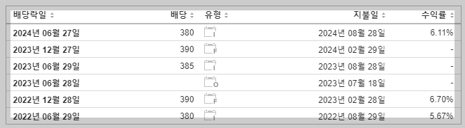 배당금을 1년에 2번 지급하고 있습니다. 12월 말에 한 번, 6월 말에 한 번. 마침 지금이 딱 6월 말이기 때문에 배당락이 걸려있습니다. 이 글을 쓰고있는 6월 27일 목요일이 배당락일이었습니다.