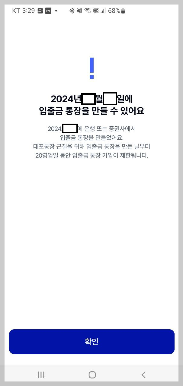 "최근 20영업일내 계좌개설 이력이 있을 경우 새로운 입출금계좌의 개설 제한"
