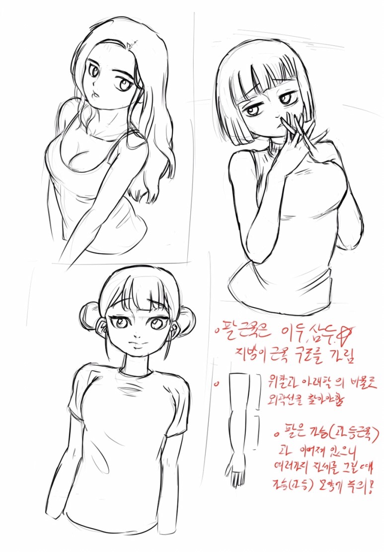 자연스러운 팔의 비율과 곡선 형태를 기억해두는 것이 좋다.