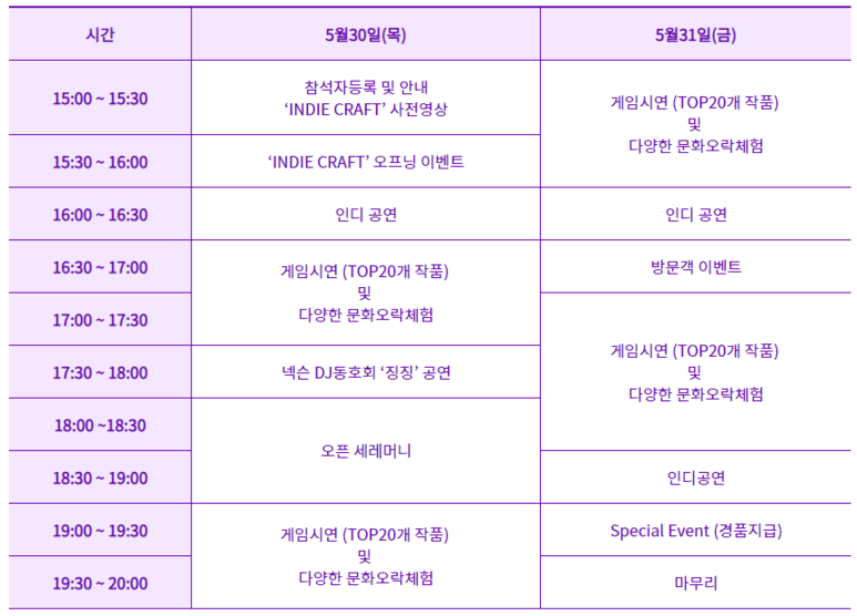 행사명 : 2019 인디크래프트, 대한민국게임페스티벌
