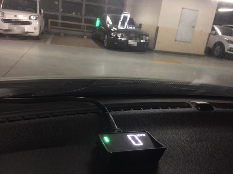 자동차 HUD를 설치한지 몇개월 됐습니다. 한참 사용해보고 쓰는 후기도 되겠네요. HUD는 Head Up Display 의 약어로, 위쪽으로 보여주는 디스플레이 정도로 설명할 수 있습니다. 위 사진 가운데에 하얀 글씨로 "0 Km/h"로 비춰 보이는 게 HUD가 쏴주는 글자입니다.