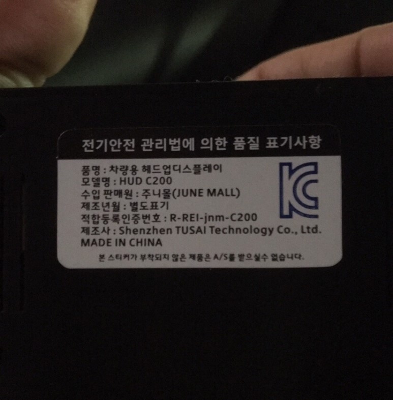 설치하기 전에 HUD 기기 뒷면 정보도 한 장 찰칵.