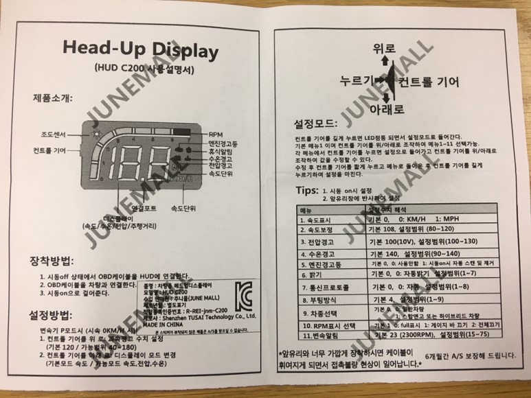 아래는 셋업 메뉴얼입니다. HUD C200 제품을 해외 직배송으로 구입할 경우, 한글로 된 설명서가 없어서 불편하신 분도 계실텐데 아래 메뉴얼 참고하시길.