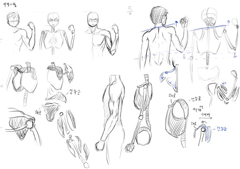 인체관련 그림 모음 (척추,회전,어깨,팔,손 등)(슈퍼만화데생)