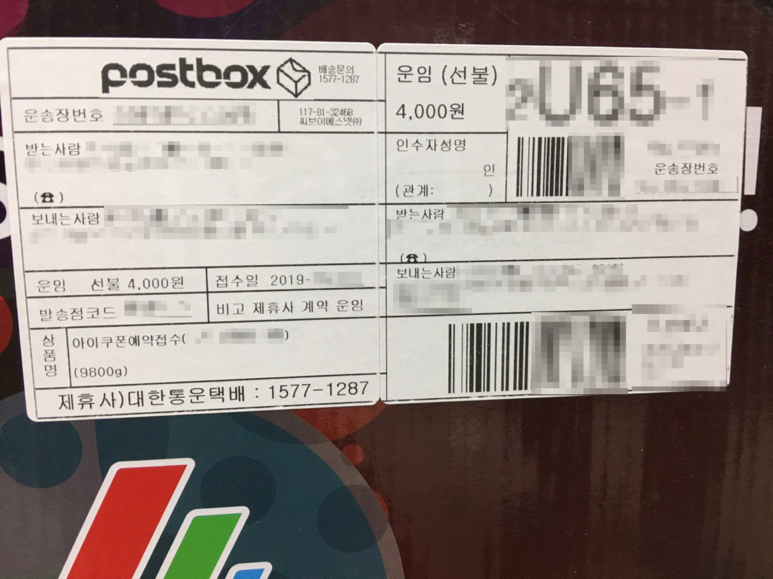 비회원 택배접수를 누른 뒤 예약번호를 입력하면, 홈페이지에서 입력했던 택배 정보를 확인할 수 있습니다. 무게 측정은, 공간이 조금 좁아보이긴 했지만, 무리 없이 잘 측정해서 접수합니다. 접수를 마치면 스티커 종이가 길게 나오는데, 두 장으로 뜯을 수 있습니다. 한 장은 택배에 붙이는 송장이고, 한 장은 결제정보와 송장번호 등이 적힌 보관용입니다.