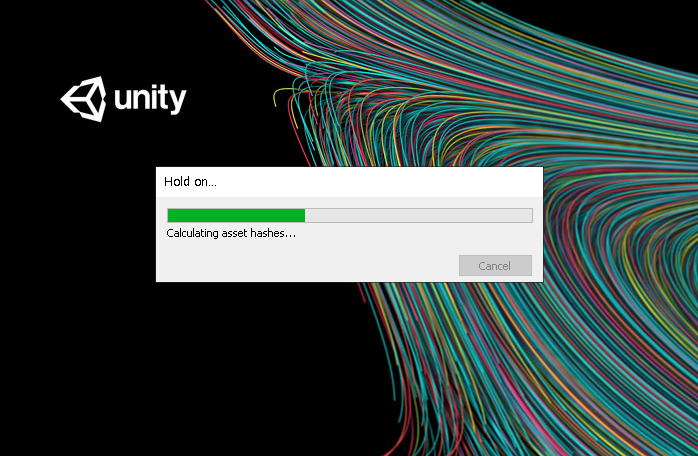 Unity 2018.3.8f1 버전을 설치하고 프로젝트 열기를 시도하면 굉장히 오랜 시간이 필요합니다. 에셋들을 임포트 하고, 해쉬값을 계산하고, 메타데이터를 만들고 등등등...