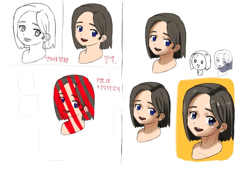 [그림공부] 수채식 컬러링, 머리 그리기, 과정