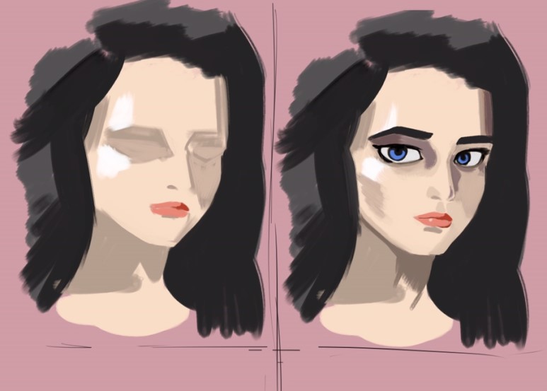 [그림공부] 유화식 채색, 머리 그리기, 과정1