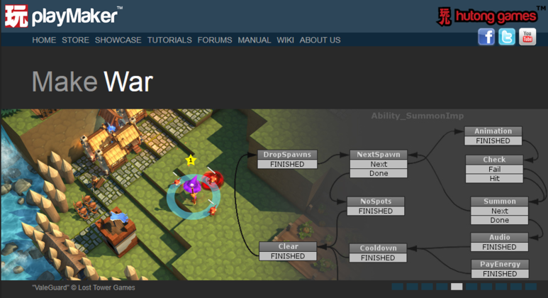 PlayMaker 는 유니티 엔진의 Asset 중 하나입니다. 이미 수 년 전부터 유명한 Visual Scripting Tool 로 알려져 있기도 합니다. 유니티 엔진의 강력한 컴포넌트 시스템을 기반으로 한 FSM 제작 도구인데, 확장성이 훌륭해서 이미 여러 프로젝트에서도 활용된 것으로 알고 있습니다. 실제로 지인분들 중에서도 상용 프로젝트에서 활용했다는 이야길 여러번 들었던 것 같군요.