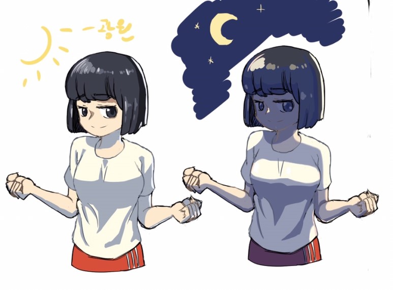 햇빛이 강할 때와, 밤 중에 빛의 양이 부족할 때 차이 채색