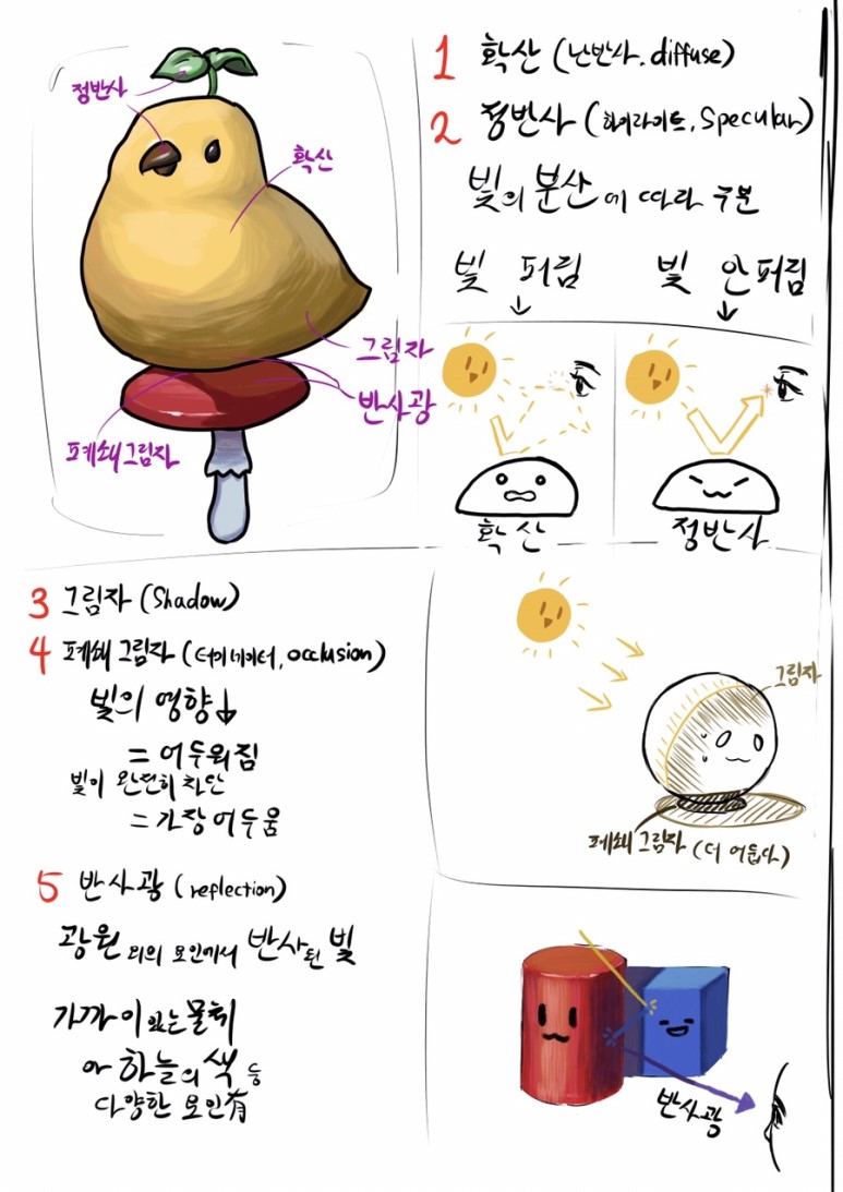 반사광은 다양한 색이 들어가서 풍부해보이는 맛이 있어서 그리는데 재밌네요
