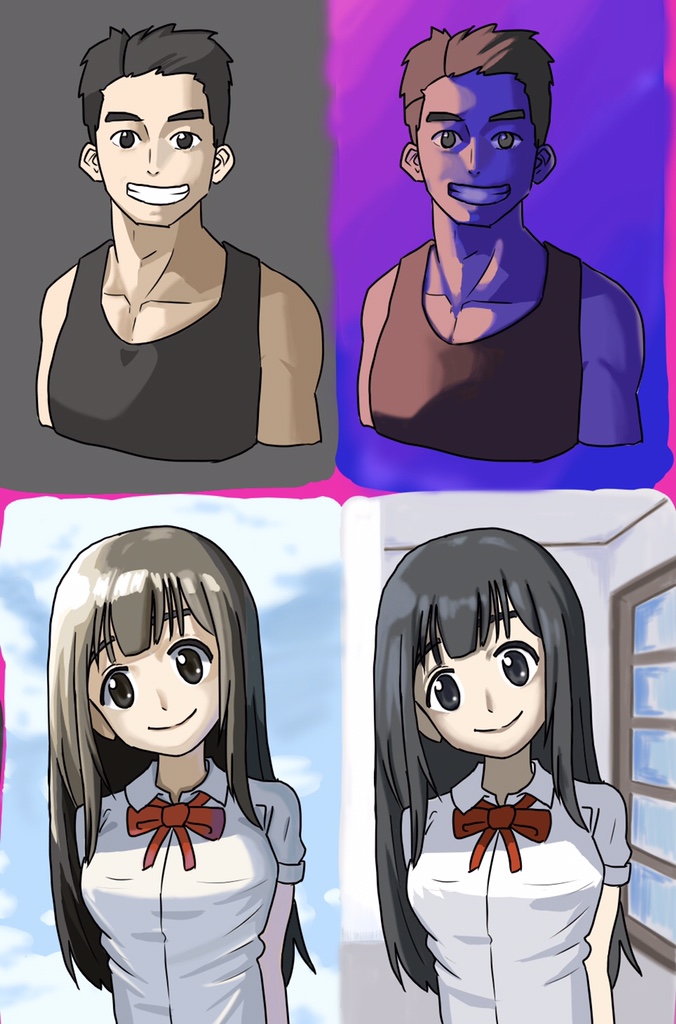 광원(앰비언트를 포함)의 색상에 따른 피사체의 색상 변화에 대해 그렸습니다.