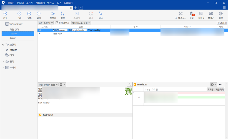 그리고 Client 는 Tortoise Git 대신 SourceTree 로 테스트.