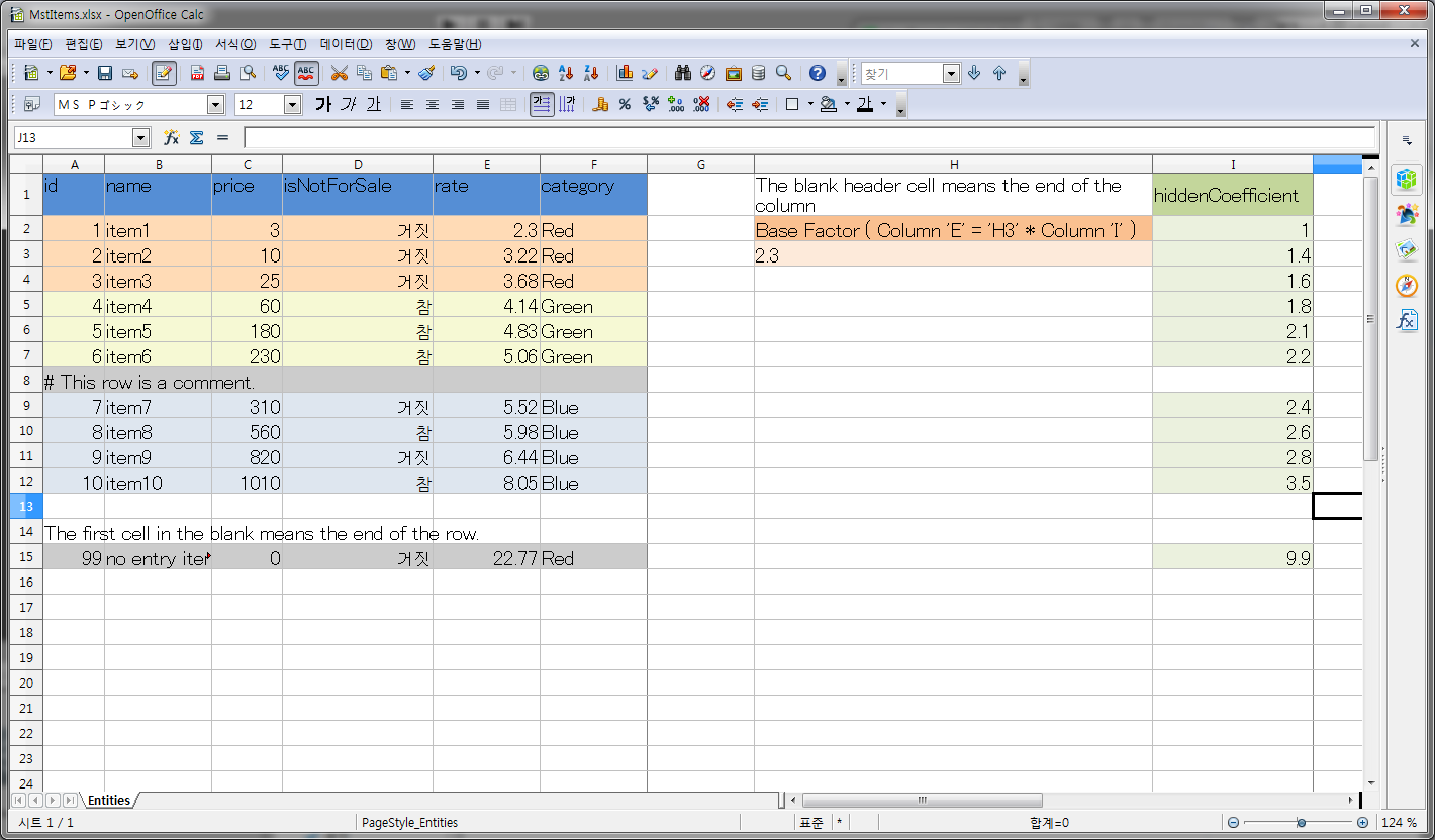 1. 엑셀 시트의 이름은 Entities 여야 함.