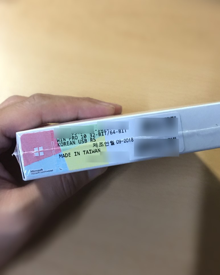 2018년 9월 생산. 모든 정품 윈도우는 대만에서 생산된다고 합니다.