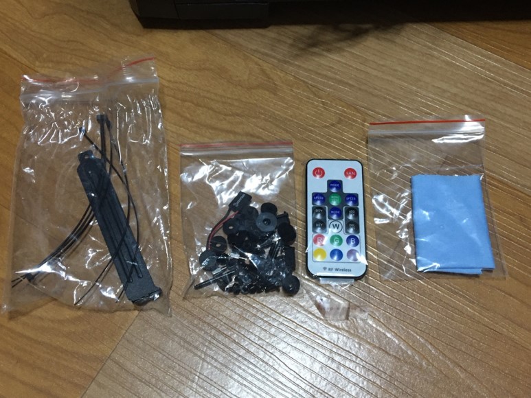 나머지 구성품. 독특한 점은, 바로 이 리모콘인데요. 사실 별로 쓸 일은 없습니다. 본체 상단의 팬 컨트롤과 LED 컨트롤 버튼을 리모콘으로 조작할 수 있다는 점 정도. 그래도 뭔가 고급진 느낌이긴 합니다.