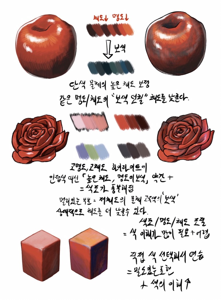-하이라이트 주변에 인접색을 섞는게 일반적이지만, 보색을 섞으면 색조가 풍부해진다