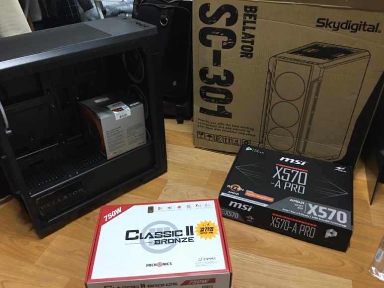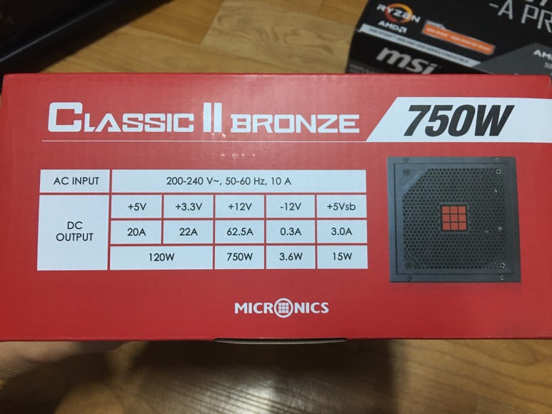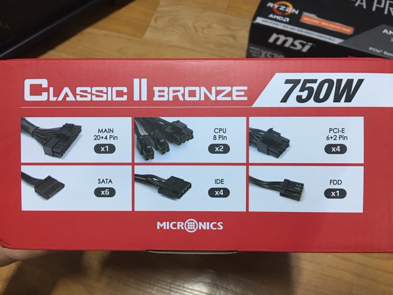 아래쪽 하얀 박스가 이번에 구입한 파워. 가성비의 마이크로닉스의 CLASSIC II BONZE 750W 모델입니다.