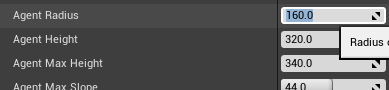 보스캐릭터 충돌 캡슐 크기 반경을 160으로 설정했으니, NavMesh 설정도 수정해줌.