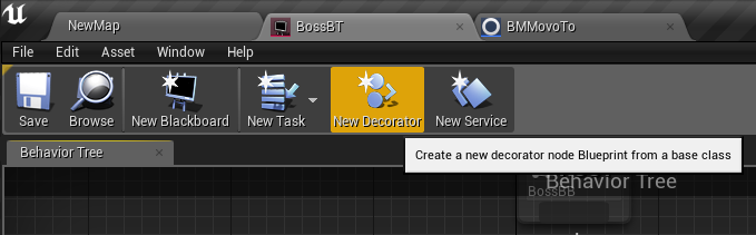 Behavior Tree 에디터 상단의 New Decorator 버튼으로 생성.
