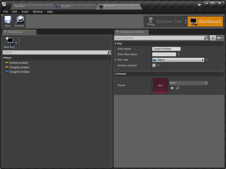 Blackboard : 모든 AI 요소에 의해 검색, 할당될 수 있는 변수를 만들 수 있도록 함.