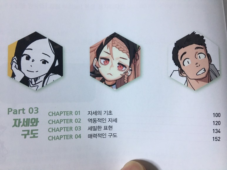 심화 내용들이라 그런지, 목차 자체는 담백합니다. 대신 내용 자체는 깊이가 있습니다. 책 제목이 다이나믹드로잉인 만큼, 좀 더 동적으로 자연스럽고 멋진 그림을 그리기 위한 내용들이 가득 담겨있습니다.