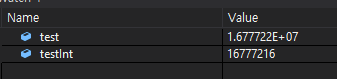 또, 가수부 자리를 모두 써버렸기 때문에 16,777,216.1234 처럼 뒤에 붙은 0.1234 역시 할당을 시도해도 메모리에 담아내지 못함.