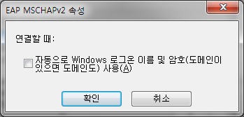 7. 인증 방법도 보안된 암호 MSCHAP v2 로 셋팅한 뒤 "구성"클릭