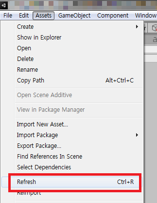 대신, 수종으로 Ctrl + R을 눌러주면 됩니다. 프로그래머 분들은 컴파일 할 때마다 F7 누르듯, 인터넷 브라우저 F5로 새로고침 하듯, 유니티에선 Ctrl + R 로 단축키 바인딩 되어있습니다.