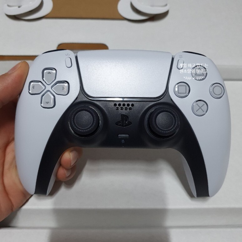 플레이스테이션5 전용 컨트롤러 듀얼센스(DuelSense)도 꺼내봅니다. PS4 용 듀얼쇼크 컨트롤러에 비해 묵직한 느낌이네요. 오래 플레이 해도 손목에 무리 없을까... 손목 건강이 먼저 생각나버리는군요.