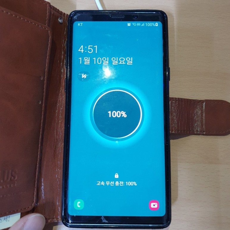 잘 올려두면 이렇게 충전되는 모습을 확인할 수 있습니다. 테스트 기기는 갤럭시 노트9. 고속 무선충전이 가능한 모델이기 때문에 "고속 무선 충전"이라는 메시지도 확인할 수 있죠. 제가 사용하는 갤럭시S 10 5G 모델도 문제 없이 잘 충전됩니다. 그런데 사진을 찍느라 직접 충전하는 모습을 촬영을 못했네요.