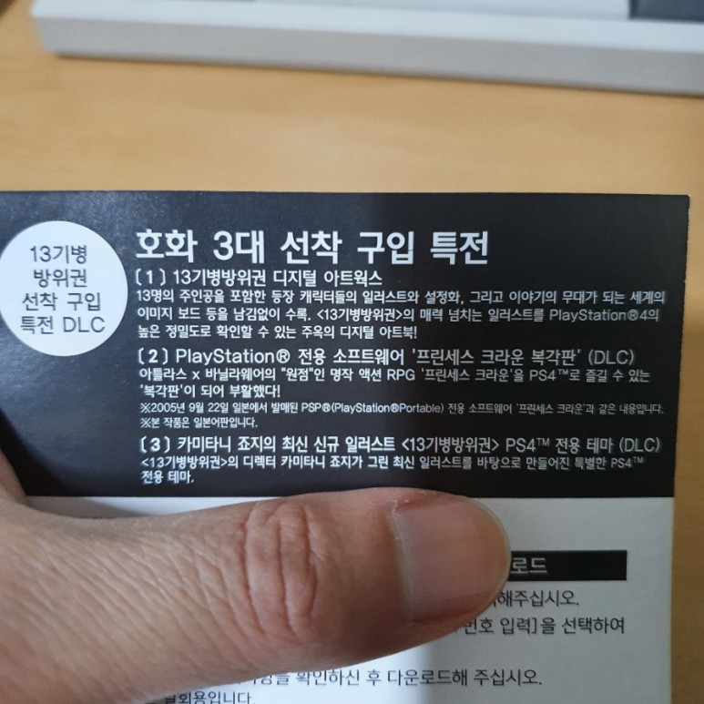 손가락으로 가린 건 프로덕트 코드. PS5에서 특전을 모두 받을 수 있을지는 모르겠군요. 포스트 다 쓰고 시도해볼 겁니다.