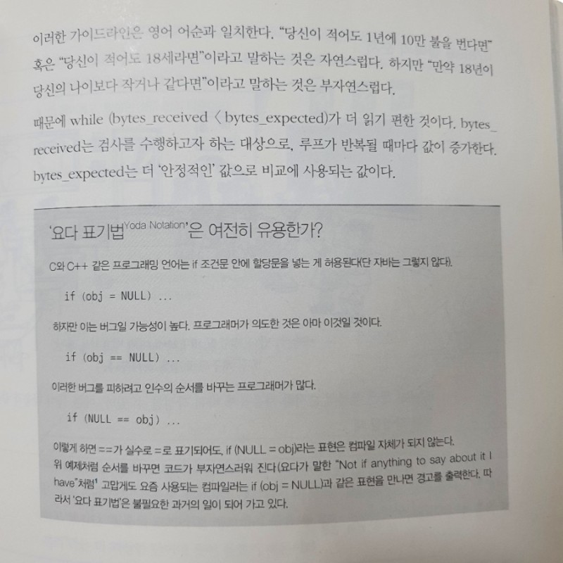 나름 재밌게 읽은 제어구문과 요다 표기법에 대한 이야기도 있습니다.