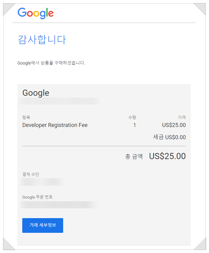 신용카드 정보를 입력해서 25달러를 결제하면 등록이 마무리 됩니다. 이메일로 날아온 영수증도 꼭 확인 하고요.
