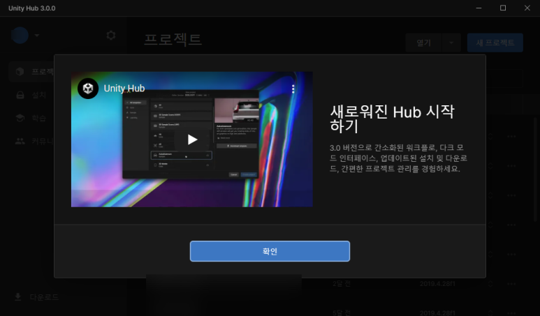 유니티 허브(Unity Hub) 3.0.0 정식 버전 둘러봤습니다