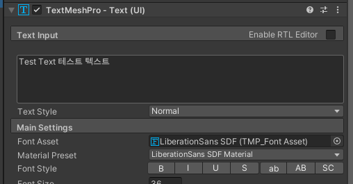 4. TMP Text 의 Font Asset 교체