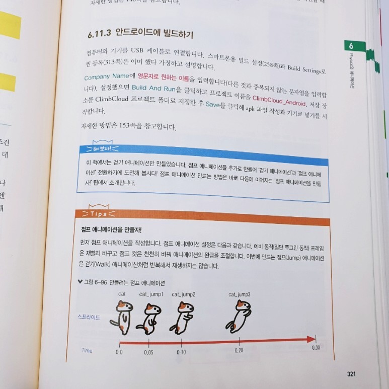 저자인 기타무라 미나미상 글을 보면 "친구에게 완성한 게임을 플레이하게 하거나 온랑니 스토어에서 판매해 봅시다" 라는 말이 나옵니다. 이 말을 실현시켜주듯 책 구성에서 모든 예제를 스마트폰에서 구동시켜볼 수 있도록 가이드 합니다. 뒤에서 좀 더 다뤄볼게요.