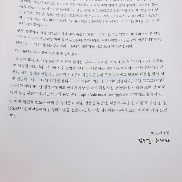 프로그래밍을 못하지만 게임을 만들고싶은 입문자, 초심자 분들께 추천하던 책이 있었습니다. 내용도 구성도 훌륭했거든요. 그 책이 바로 "유니티 교과서" 시간이 흘러흘러 무려 개정5판이 나왔습니다.