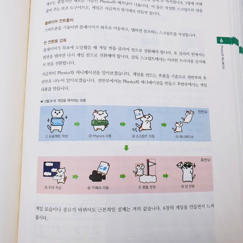 1장은 여느 유니티 입문서들과 큰 차이점은 없습니다. 유니티 사용법은 정해져 있으니까요. 하지만 본격적으로 게임 제작을 가이드 하는 3장부터는 구성이 인상깊습니다.